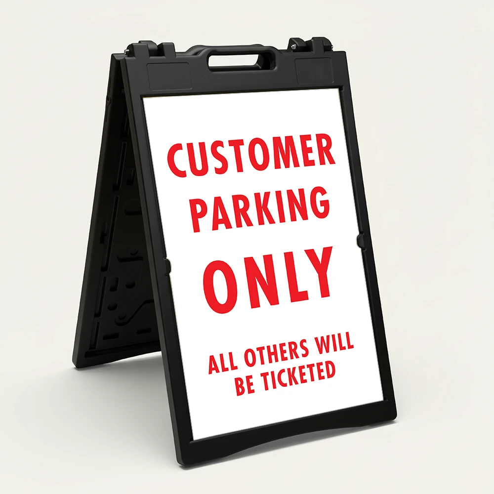 SKU: AFRM_010 Categories: A-Frame Signs, Parking Lot, Private Parking, Valet Parking Tags: a frame, black, customer, danger, only, parking, sandwich board, towed, white