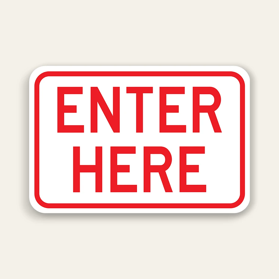 This straightforward sign directs traffic to the correct entry point, guiding vehicles safely into driveways, parking lots, drive-thrus, loading zones, or restricted areas. It features a white background with red border and bold red text “ENTER HERE” for high visibility and immediate direction.