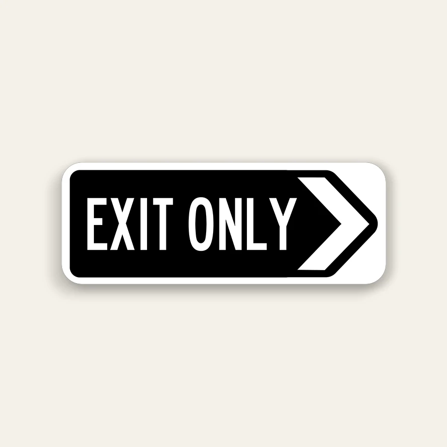 - Large right arrow + “EXIT ONLY” text provides instant directional restriction cue