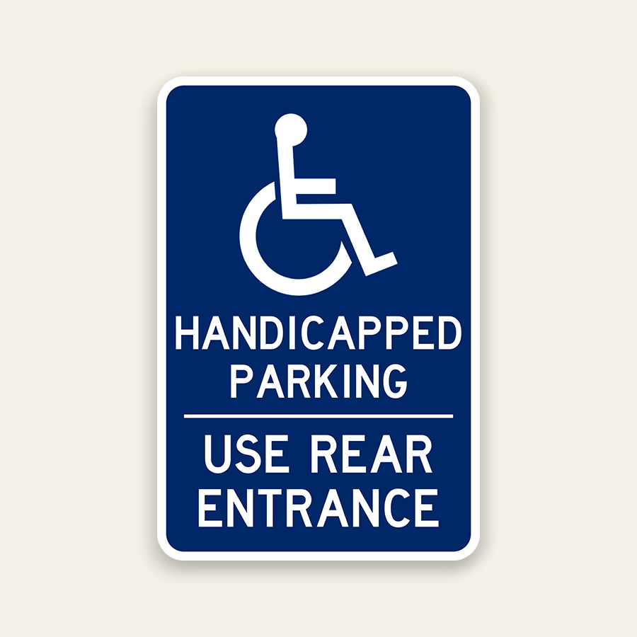 Handicapped Parking Use Rear Entrance ADA Sign