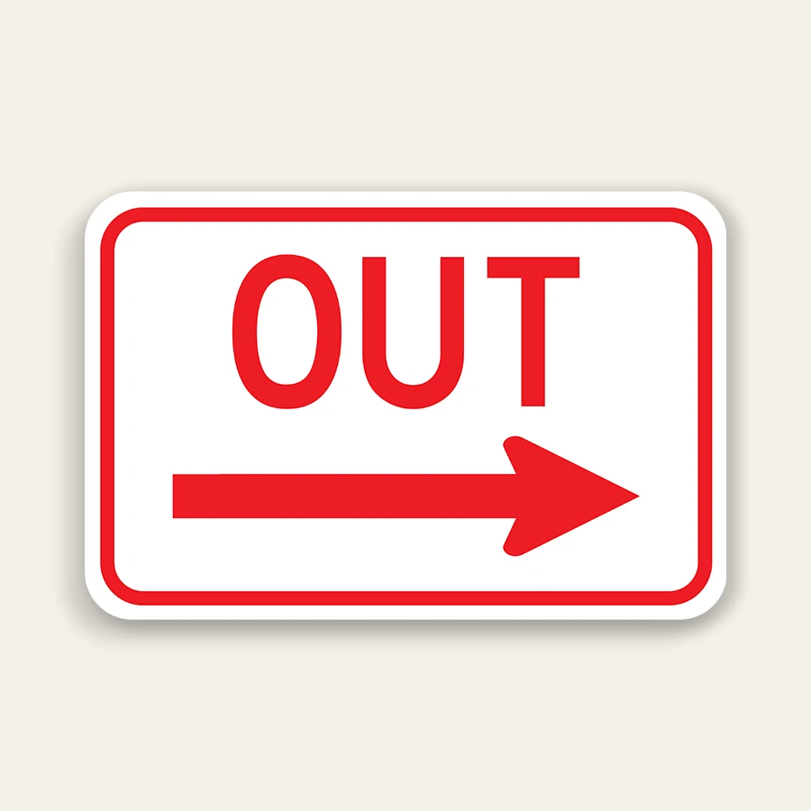 - Usage: Ideal for marking exits in parking facilities, shopping centers, office buildings, hospitals, drive-thrus, loading zones, or highways where the exit path requires leftward guidance to prevent wrong turns and ensure safe departure. The word “OUT” is a concise, widely understood alternative to “EXIT” in many parking and traffic contexts.