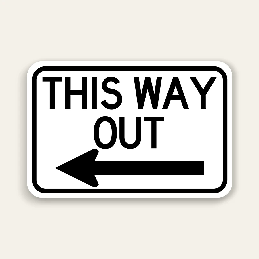 This Way Out – Left Arrow Exit Sign 12×18 Inch (Black)
