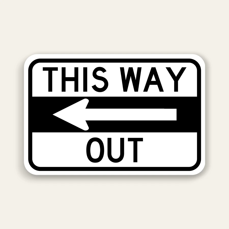 This Way Out – Left Arrow Exit Sign 18×12 Inch (Black)