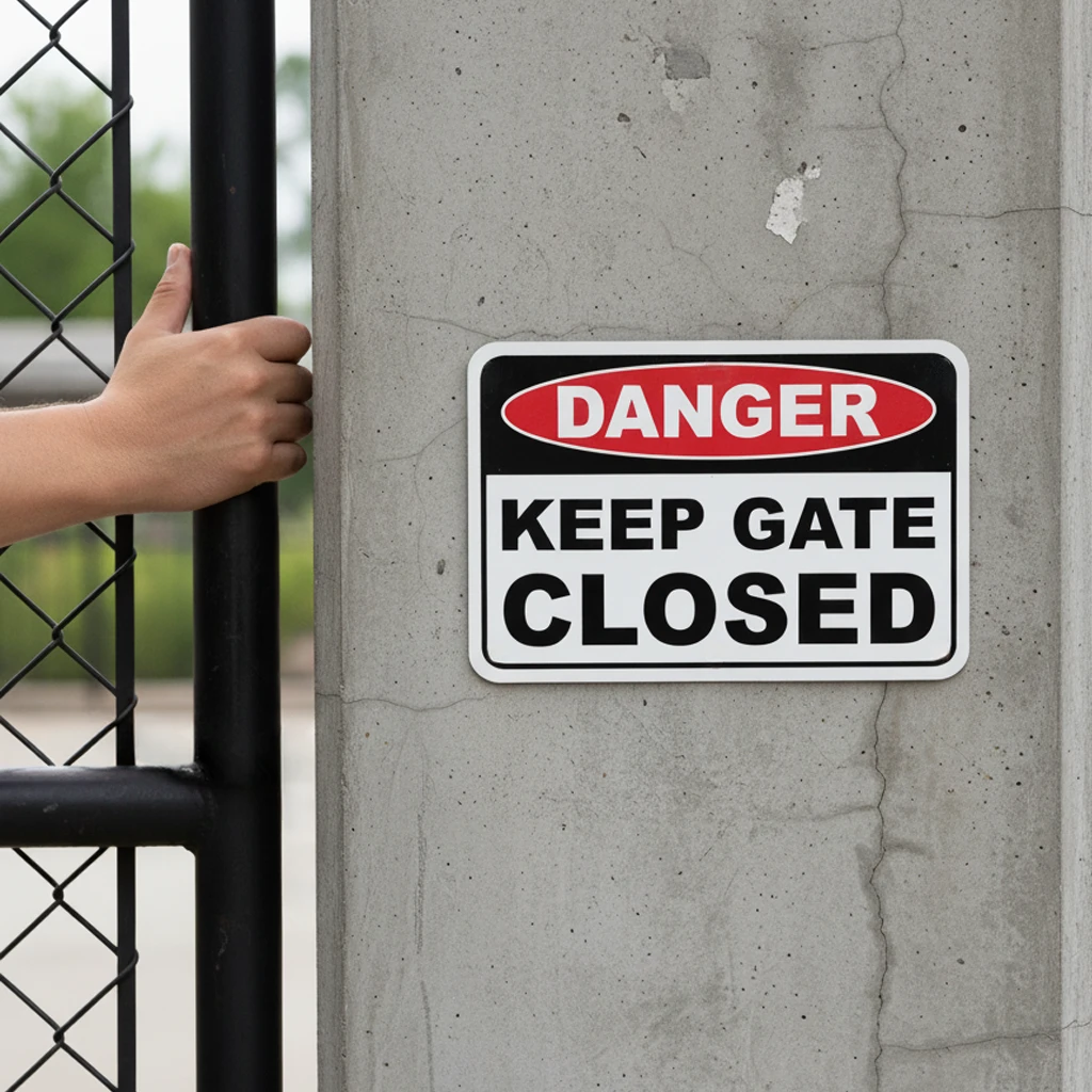 Alerts users to keep gates closed at all times to maintain security and safety. Ideal for residential complexes, commercial properties, and restricted access areas across Los Angeles. Helps prevent unauthorized entry and operational issues.
