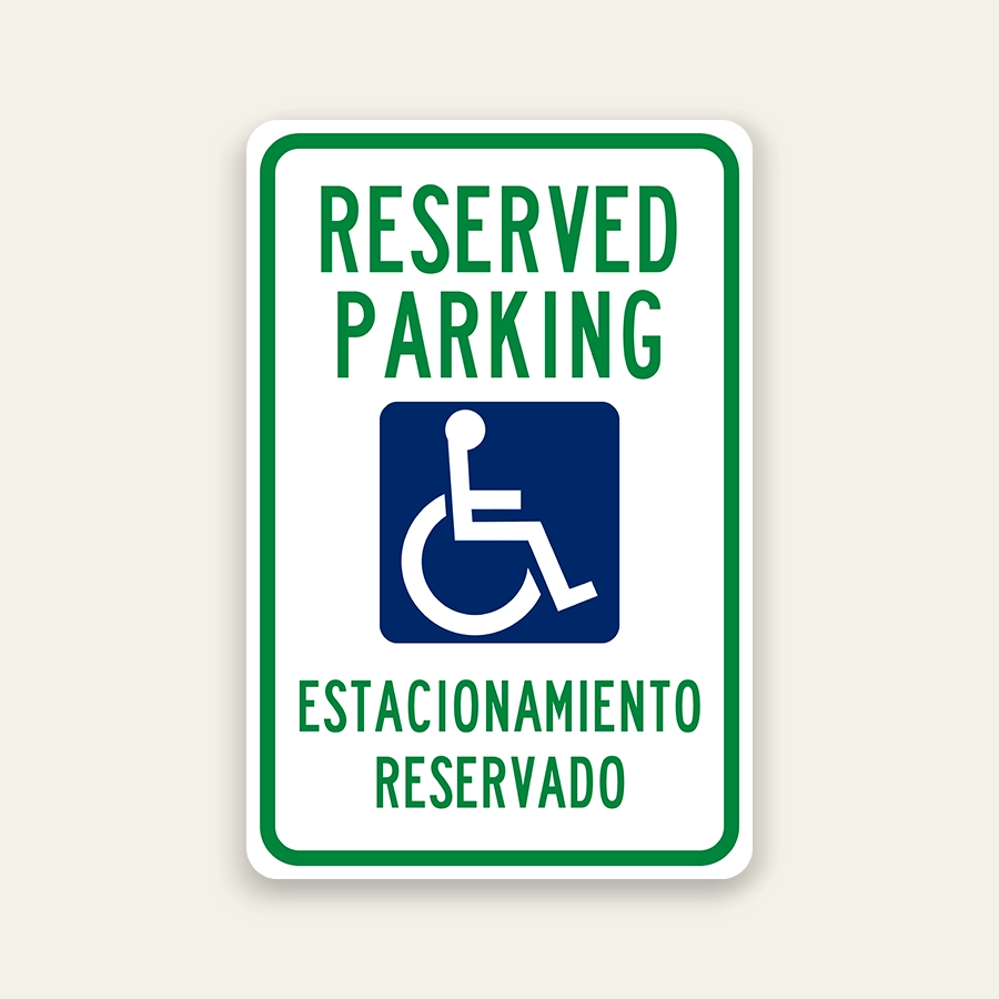 Reserved handicap parking bilingual sign with ADA symbol and Spanish English text