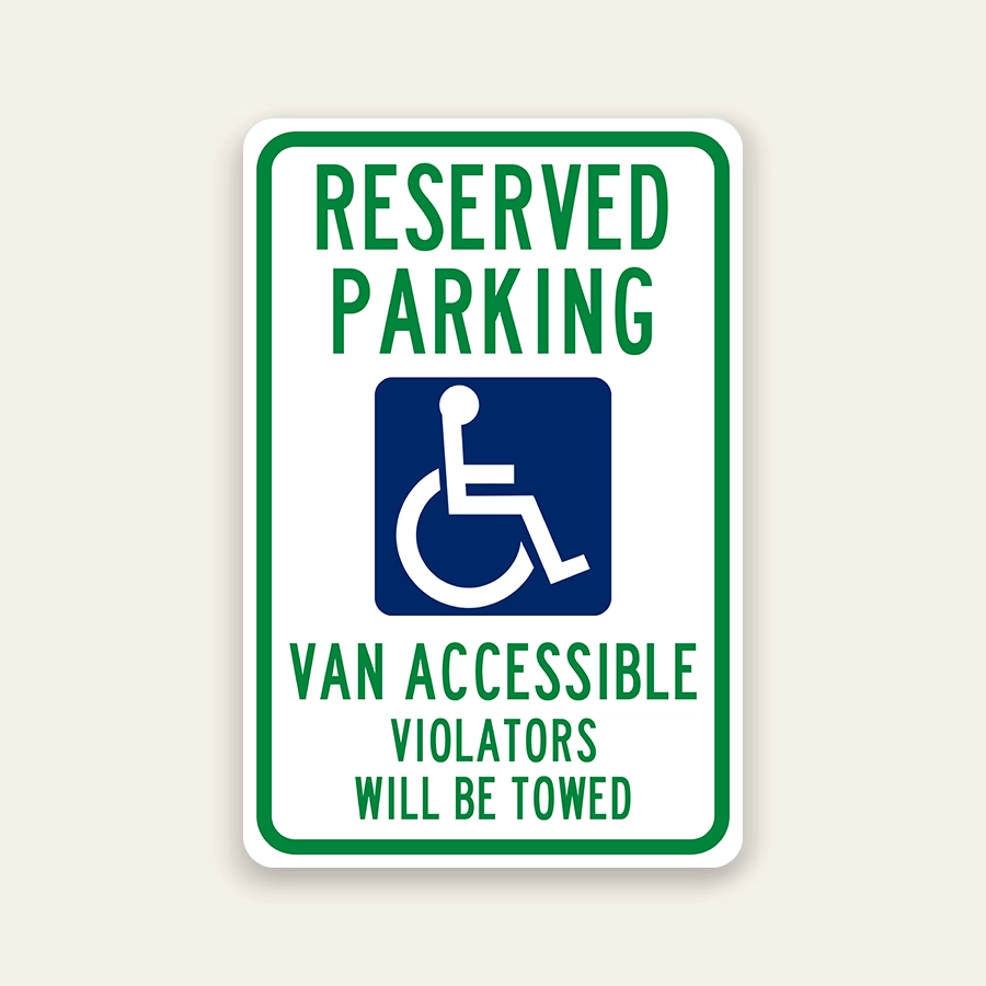 Prevents unauthorized parking by clearly reserving van-accessible handicap spaces with tow-away enforcement. Used in commercial properties, ADA-compliant facilities, and high-traffic parking areas to maintain accessibility.